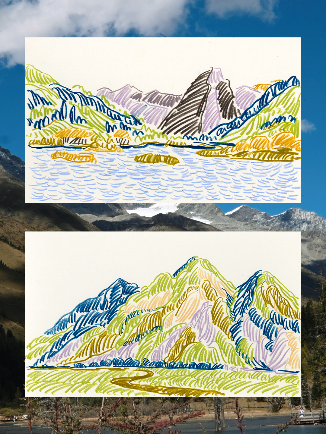 This time, the mountains have taken on deeper, richer tones — gold and brown blending softly with the fading green, and patches of blue alpine gentian flowers blooming along the foothills. The slopes are covered with sea buckthorn trees, their orange berries glowing in the autumn light. I couldn’t resist tasting them as I hiked — so sour they made my whole face twist, yet they added a vivid, unforgettable flavor to this highland journey.