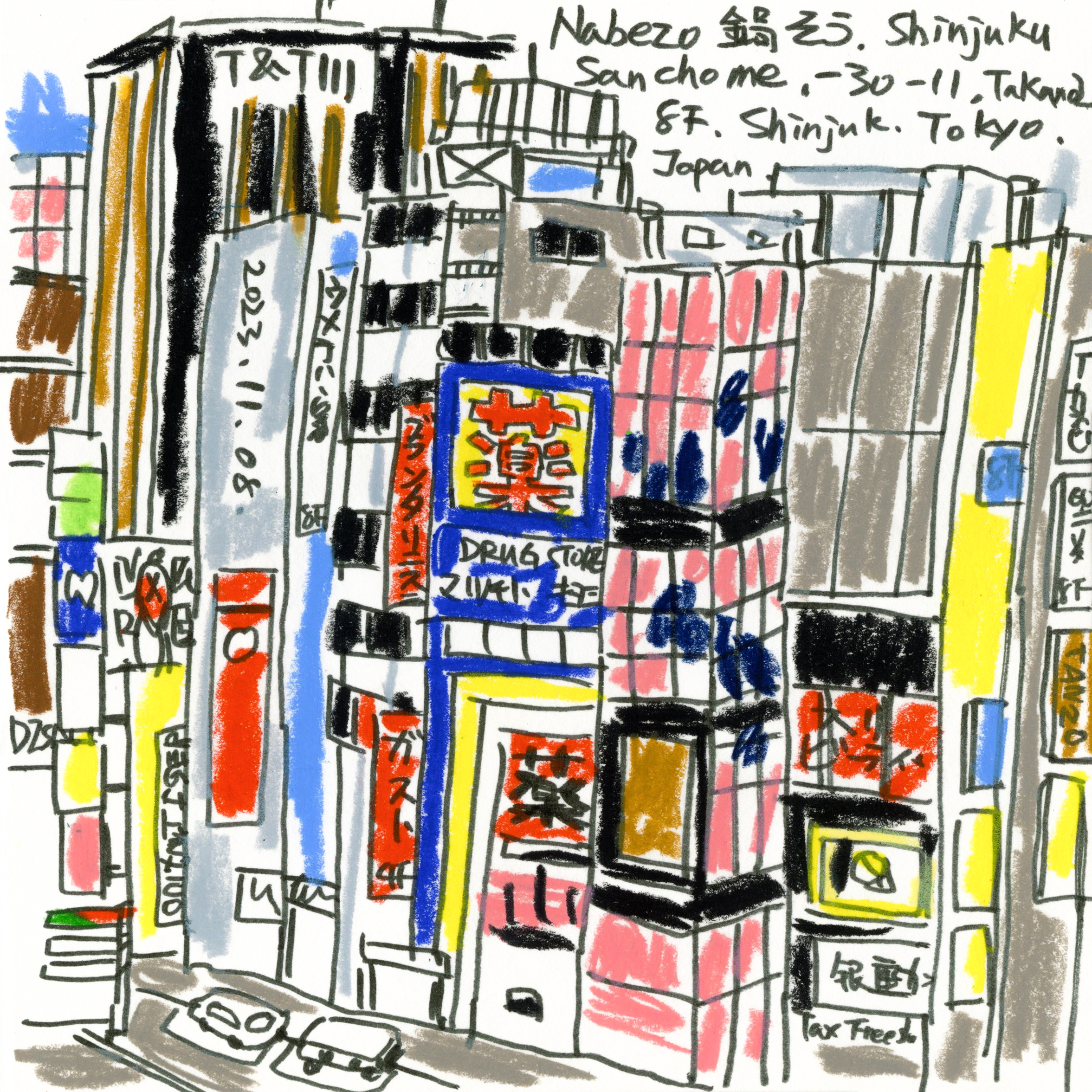 2023 WinterThis drawing series showcases the captivating street scenes and lifestyles of Tokyo during the winter of 2023. Encompassing Matsuri celebrations, bustling markets, and serene temples, the collection also features numerous rapid sketches capturing delicious food and intriguing moments observed by the artist on hotel paper.